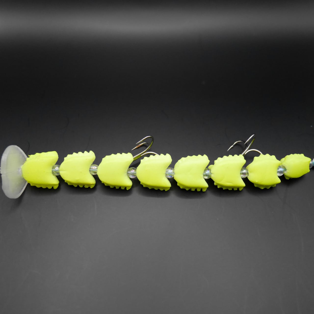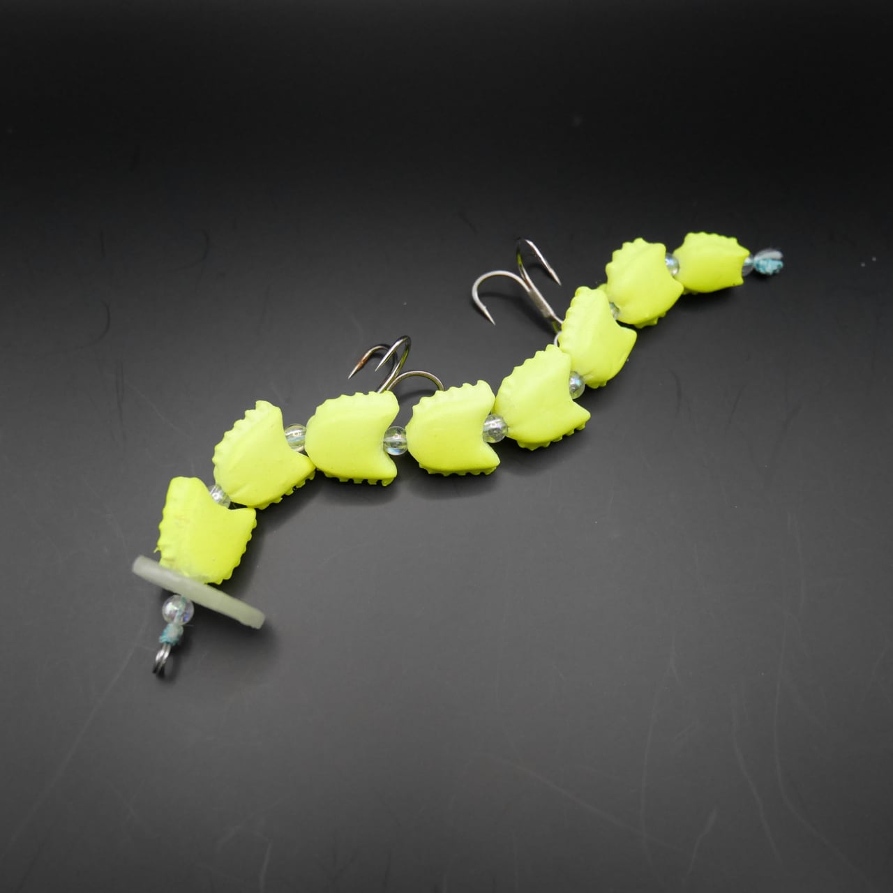 特徴的な通常のリップとは逆向きのワイドリップにより、デッドスローでのアクションと浮き上がりやすさを実現し、バチの遊泳レンジをバチに紛れてデッドスローでアプローチすることが可能です。また、連結パーツを用いない多関節構造により、非常に艶めかしくボディーをくねらせアクションします。